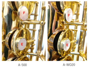 EとFのキーに限ったことではありませんが、指貝の形がかなり異なります。A-WO20の方が窪みが大きく、指にfitする感覚が強いです(写真でわかりますでしょうか?)。