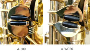 太い棒1本のオクターブキーのA-500(A-WO10と同じ形)、細い棒2本のオクターブキーであるA-WO20は、見た目が大きく異なります。