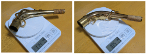 ネックを含めた全体の重さはA-500が2.45kg、A-WO20が2.65kgです(0.05kg単位、マウスピースは含まず)。通常の体重計で自分の体重を差し引く形で測定したので、若干の誤差があるかもしれません。A-WO20の方がやや重めなのは実感として間違いありません。